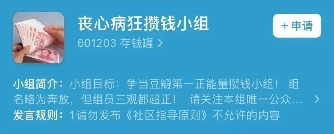 想想豆瓣“丧心病狂攒钱小组”成员都超过60万了,这其实也不难理解。