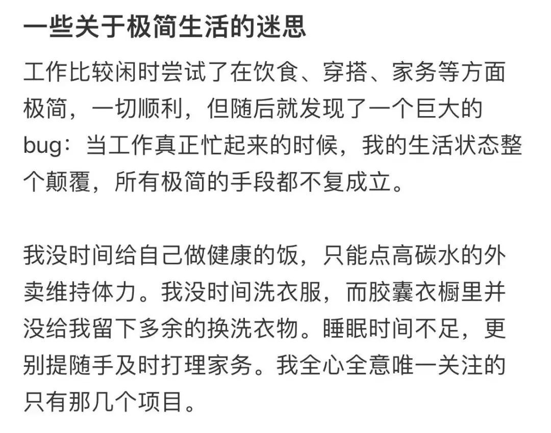 也有人发现,在紧张的工作和生活节奏中,很多极简的生活方式,都不可能成立。