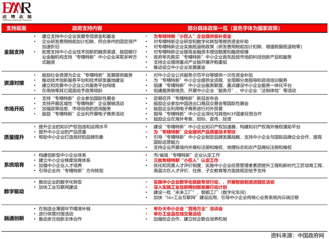 「“专精特新”的政策支持」