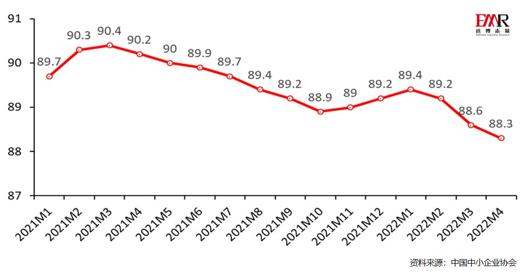 图2 :2021年1月-2022年4月中小企业发展指数