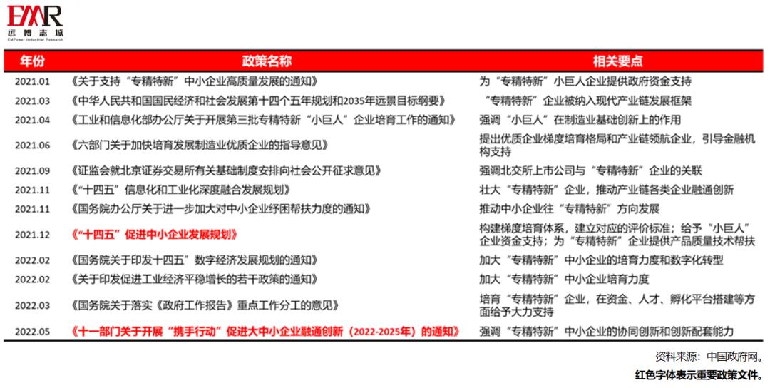 表4:2021-2022年有关“专精特新”的主要政策一览