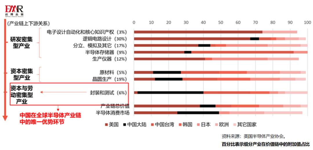 图3:2019年半导体细分产业各国市场占比