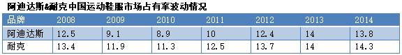 曾有数据显示,2002年阿迪达斯全球销售额尚不及耐克的50%,六年后该数据已提升到78.3%,中国市场两大品牌已平起平坐。