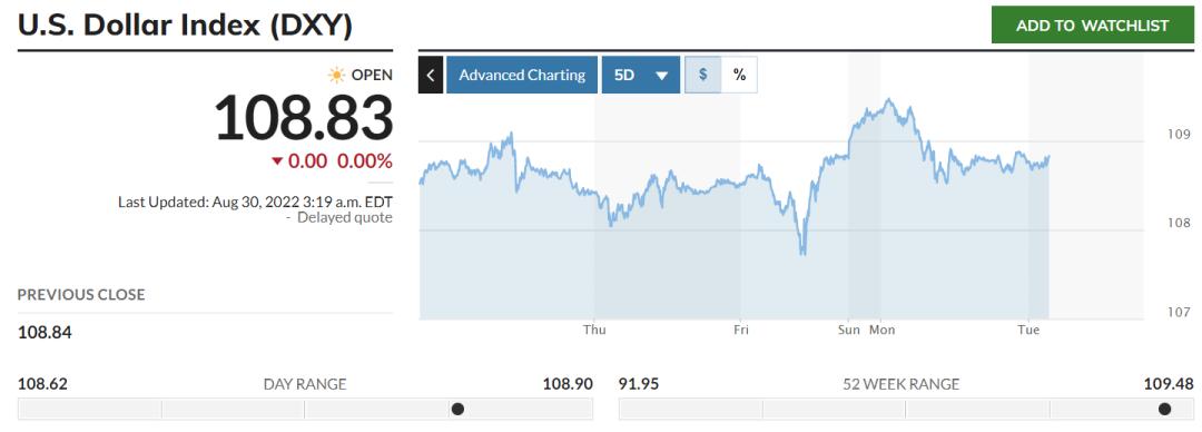 8月29日,ICE美元指数持续飙升突破109,续刷20年新高,截至美东时间8月30日凌晨,美元指数停留在108.83。隔夜,三个主要货币(欧元、英镑和日元)兑美元均跌破关键技术水平,英镑兑美元跌破1.17,续刷前年3月新低;离岸人民币兑美元跌破6.92关口,一度跌300点。