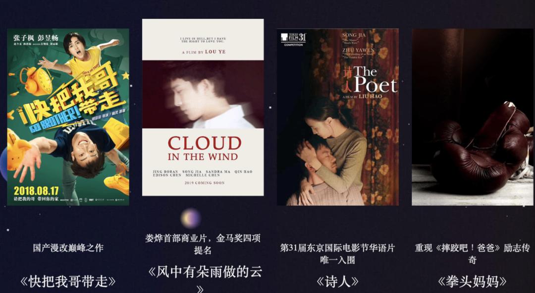 从最初恒星引力的布局来看,明显不是专注于仙侠古偶。2018年,初入行业的恒星引力,投了很多文艺片。包括娄烨执导的《风中有朵雨做的云》,宋佳、朱亚文主演的《诗人》,还有谭卓主演的《出拳吧,妈妈》。这些电影,大概率是赔钱。