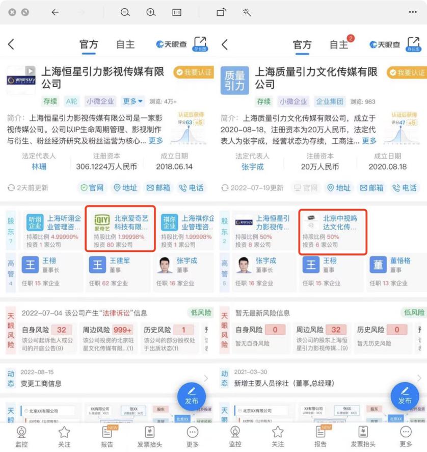2020年8月,恒星引力又与中视鸣达文化传媒合作成立质量引力文化传媒公司。这家中视鸣达文化传媒背后的控股方为抖音旗下量子跃动科技。也就是说,恒星引力有了长视频资方爱奇艺投资后,又引入了短视频字节系的资本。