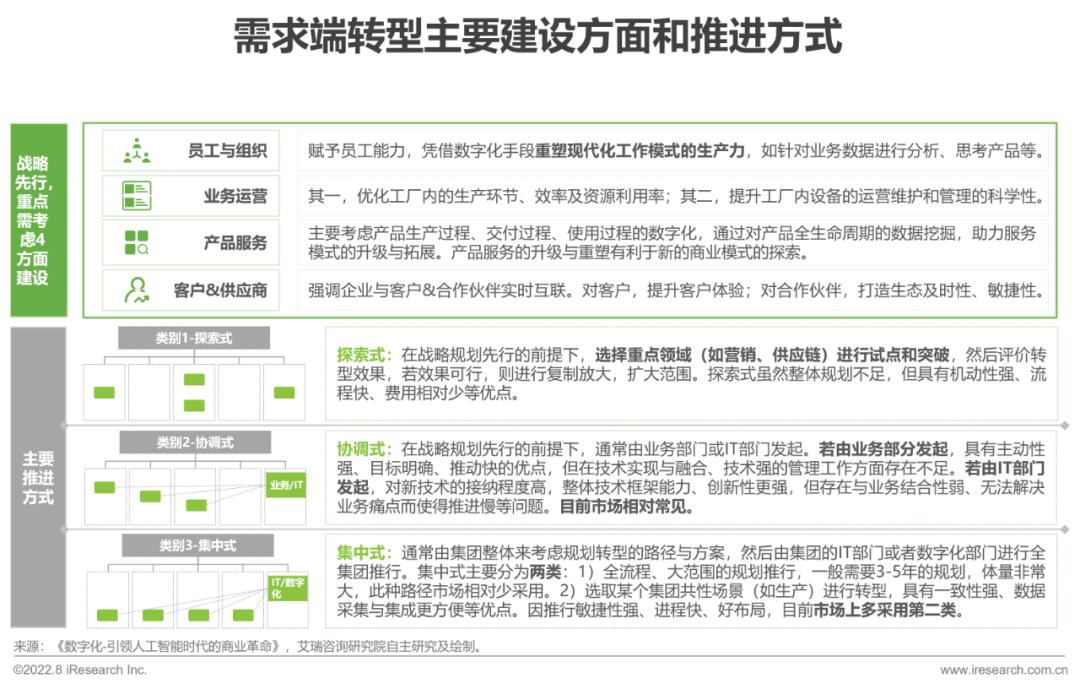 需求端2:战略先行是前提,员工、业务、产品和客户是数字化建设重点;推进方式需适合企业现状和未来发展诉求,忌大而全