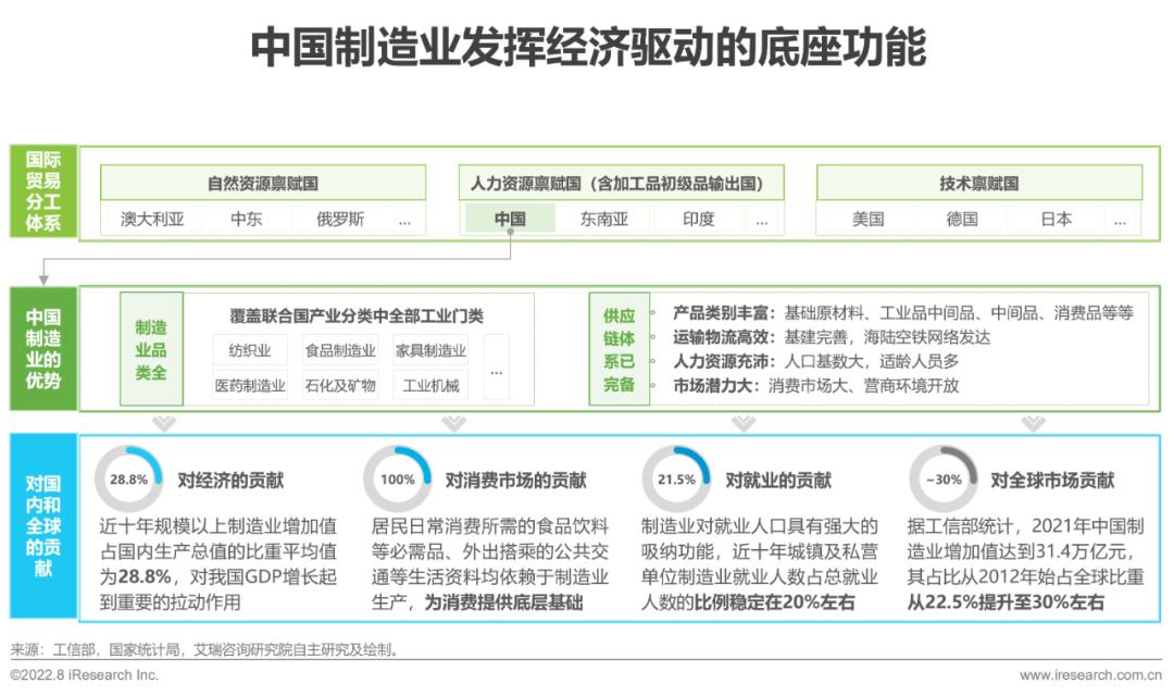 作为世界工厂,中国制造业的主要价值体现在以下几个方面:1)针对国内市场,在拉动本国经济增长、促进本国就业等方面贡献卓越,更是我国民生消费的底层基础;2)针对全球市场,从原来的原料出口国,逐步转为工业品中间品、中间品等普通技术密集型产品的国家,为其他国家消费品的满足提供坚实支撑。