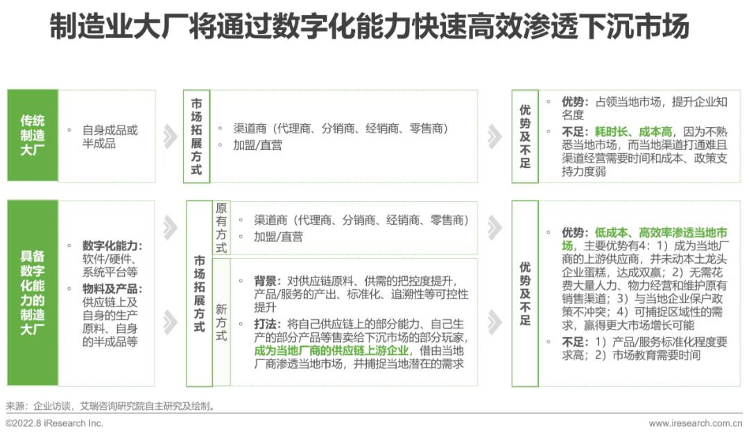 数字化能力提升供应链、产品/服务的可控性,企业下沉时可由原来的中游厂商跃迁为上游厂商,区域覆盖与业务增长双赢