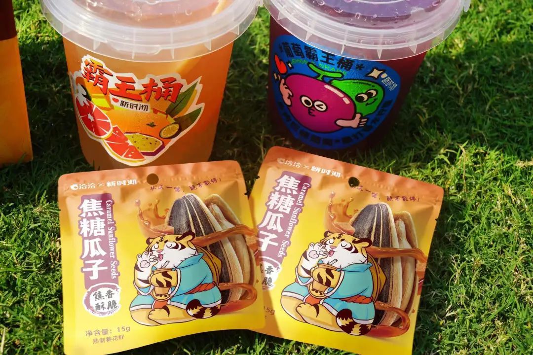 去年就在探寻“奶茶+炸鸡”双品类运作的新时沏,最近也联合洽洽推出瓜子等零食。