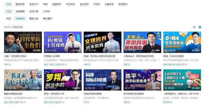 通识科普和技能学习成为付费课程重头戏的生态,和B站站内知识区的飞速发展相契合。2021年,平台知识区创作者增长规模达92%。[8]销量更高课程的讲师,通常也是站内热门名师UP主,比如罗翔、沈逸、戴建业。