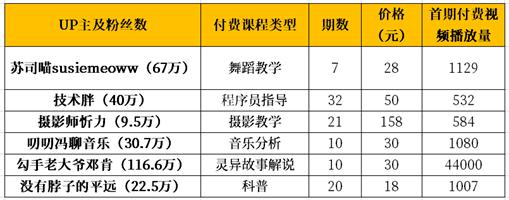 部分推出付费视频UP主统计。图片自制