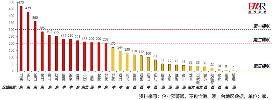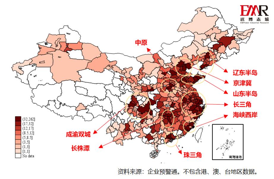 2、区域与城市分析:东部省份表现强势,企业呈现集群分布