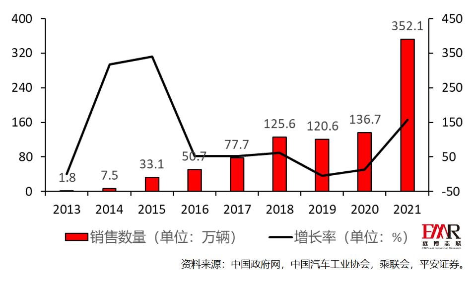 图6 2013-2021年中国新能源汽车销量
