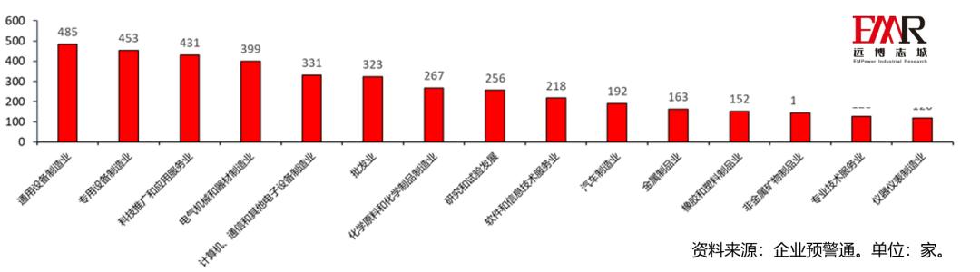 图1 省级“专精特新”中小企业超过500家的国标行业大类