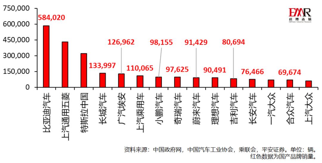 图7 2021年中国各品牌新能源汽车零售销量