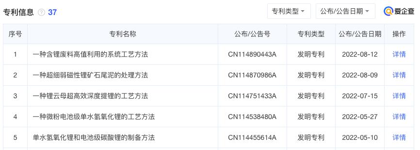 研发上的不足也影响了九岭锂业的专利积累。招股书中披露了九岭锂业37项发明专利,这与赣锋锂业的98项、天齐锂业的145项存在明显差距。