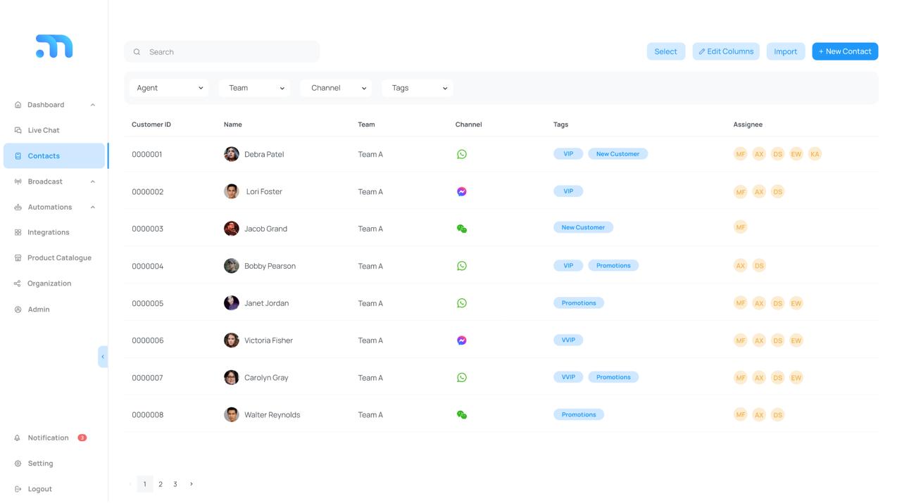 除了WhatsApp外,「MatrixForce」还覆盖Instagram、Facebook、Messenger等多个海外主流社交软件,提供实时对话、推送功能,以实现多渠道获客与客户运营,搭载AI聊天机器人系统,满足“7*24小时”回复客户需求,同时对客户数据进行分析、标签归类,支撑后续的客户关系管理系统运行。此外,「MatrixForce」支持团队多人管理、定向推送等功能,通过一个对话窗口,卖家可向顾客提供产品推送、客户咨询、下单支付、售后服务、二次复购等全链路的购买及服务流程。