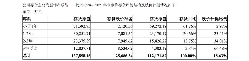 3年以上的存货,剩余价值所剩无几:图表源自美邦2021年年报