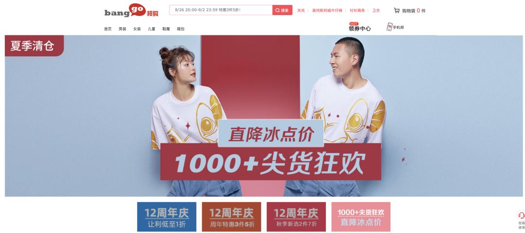 “邦购”首页几乎都是清仓、折扣等营销活动