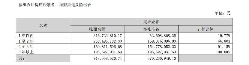 加盟模式下,品牌侧库存高企,也意味着零售端的滞销,而这将直接导致品牌“应收账款”中出现大规模的坏账。