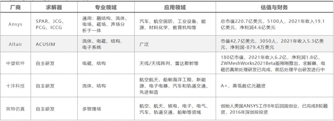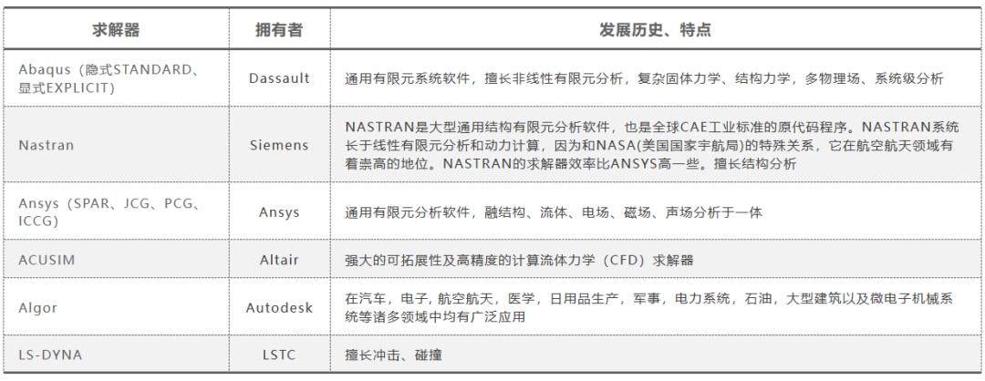 海外龙头CAE企业核心产品不仅包括CAE软件,还提供求解器、通用模块等核心技术的销售以及CAE咨询方案。我国也诞生了许多优秀的具备完全自主可控的CAE软件,如中国飞机强度研究所的HAJIF、中科院FEPG、中望软件ZWMeshWorks等,但是普遍体量较小,应用领域狭窄,主营业务仍然停留在卖软件环节,其核心技术无法对外输出。