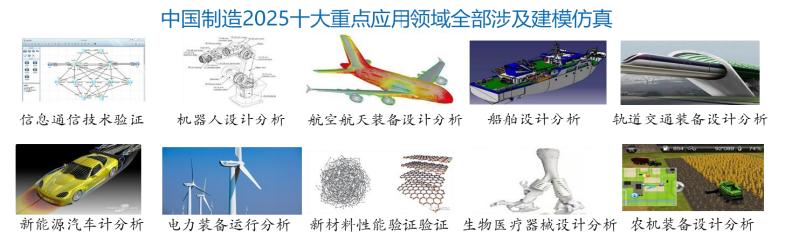 2、CAE软件应用领域广泛,中国制造2025十大重点应用领域全部涉及建模仿真,涵盖信息、材料、能源、制造、生物医药等产业。