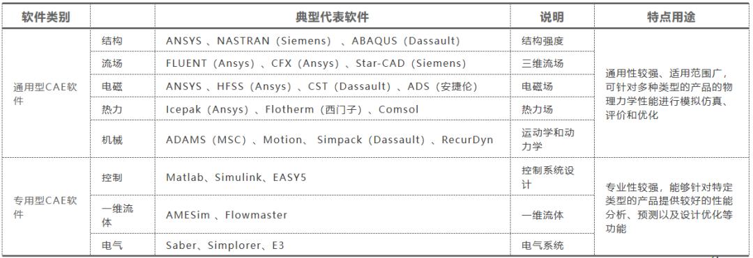 模拟仿真涉及到力热声光电磁等物理领域,每个细分领域都很专业,因此CAE软件种类非常多。按照求解范围分为通用型、专用型,此外,专业领域有前处理软件、求解器软件、后处理软件等各种类型。