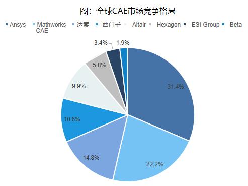 (2)CAE软件竞争格局呈寡头垄断。CAE被国外垄断,中国面临卡脖子风险。