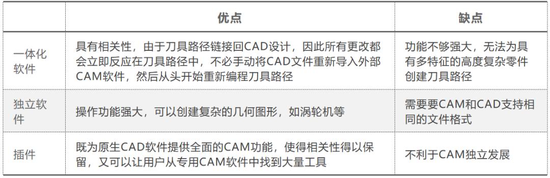CAM软件通常有三类:CAD、CAM一体化软件,独立CAM软件,CAD插件。