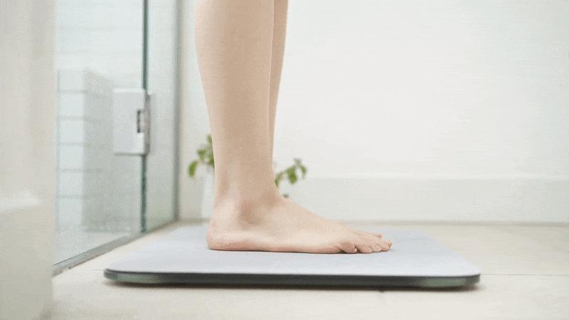 但这块地垫是用了悄咪咪的方式来称体重——每天洗完澡踩上地垫,体重数值不知不觉被记录下来传到 app,没有即时的数值的显示也让人减轻压力。
