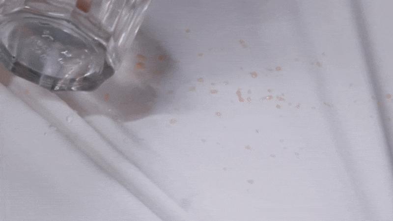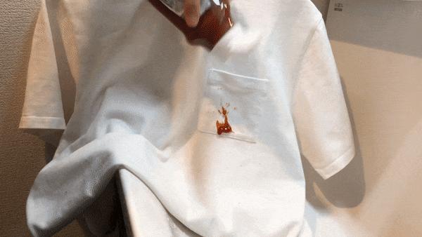 这件「魔术拉面 T 恤」不像含 PFAS 成分的防污产品,吃完拉面还是会弄出星星点点的污渍。这个时候该怎么办呢?