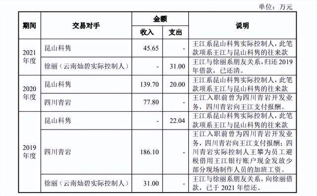 按照联众网络的说法,王江入职前为昆山科隽实际控制人,在报告期内与昆山科隽的资金往来是其个人与昆山科隽的往来款,与公司无关;而在2019年王江向公司项目合作方云南灿碧实控人徐丽借款31万,则是出自二人的朋友关系,并已于2021年偿还。