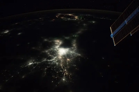 从国际空间站上拍摄的地球夜景。