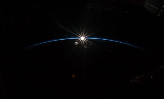 国际空间站上拍到的日出。由德国宇航员亚历山大·格斯特拍摄。