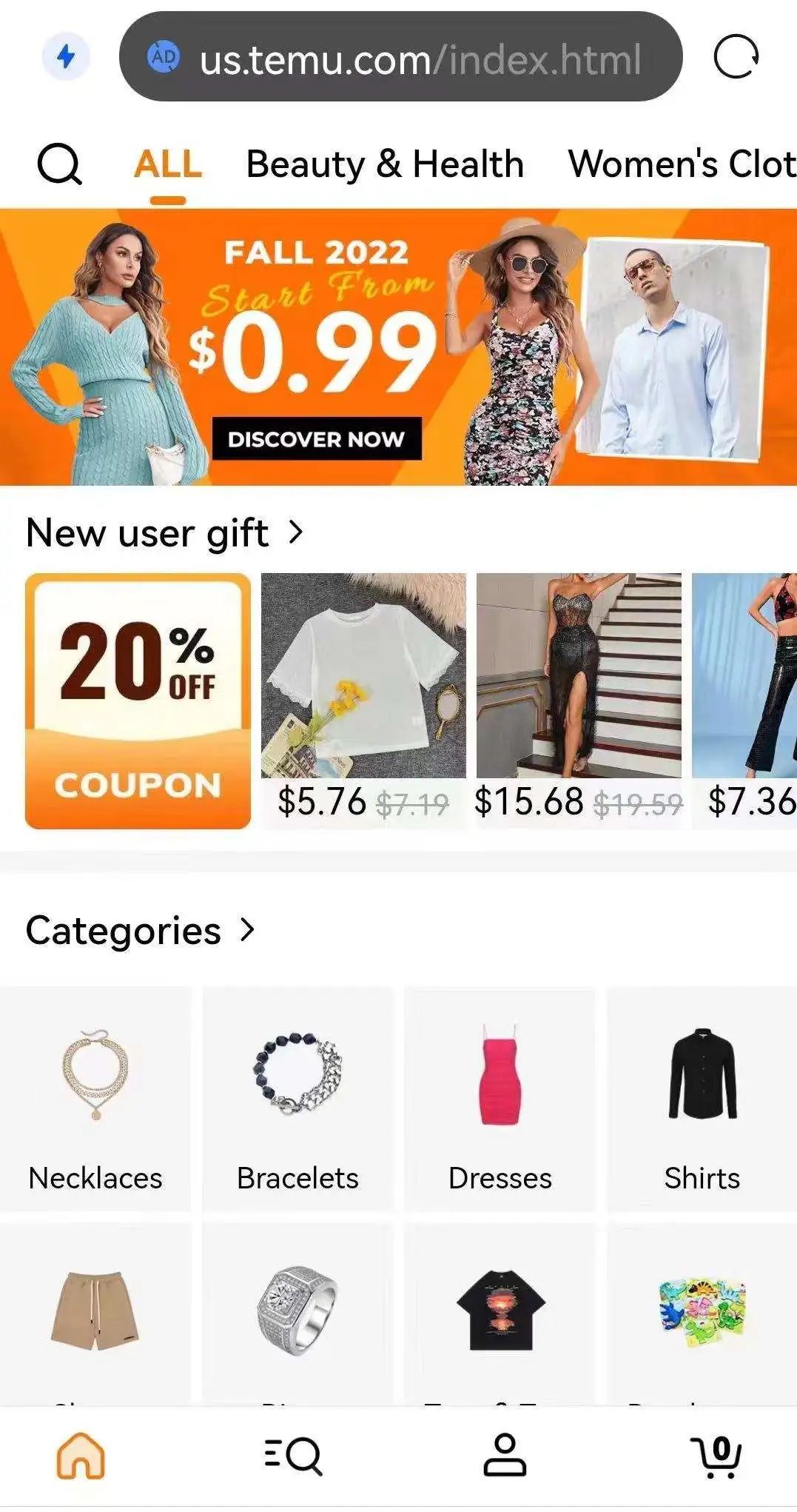 据新言财经观察,Temu的网站和APP的功能设计几乎没有差别。从网站页面来看,Temu和SheIn颇为相似的一点是,首页“20%”折扣的标识非常明显。除去折扣标识,在网站首页,无论是头图还是新用户优惠专区都在突出女装。可以明显地感受到,Temu想要以年轻女性为主要目标群体,并且想从跨境电商平台SheIn最拿手的女装类目为突破口。
