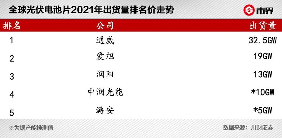要知道,通威不仅是硅料龙头,也是光伏电池最大玩家。来自PV Infolink的数据显示,通威在2021年全球光伏电池片出货量排名中位列第一。但隆基正谋求光伏电池上更大的蛋糕。
