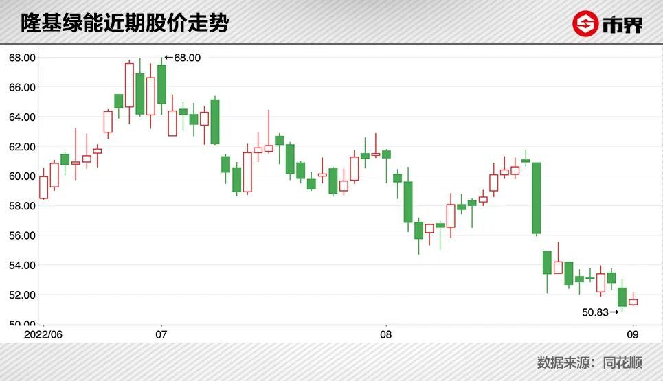 从8月19日到9月1日,隆基股价下跌15%。此前其市值约4620亿元,如今市值3916亿元,抹去约700亿元。