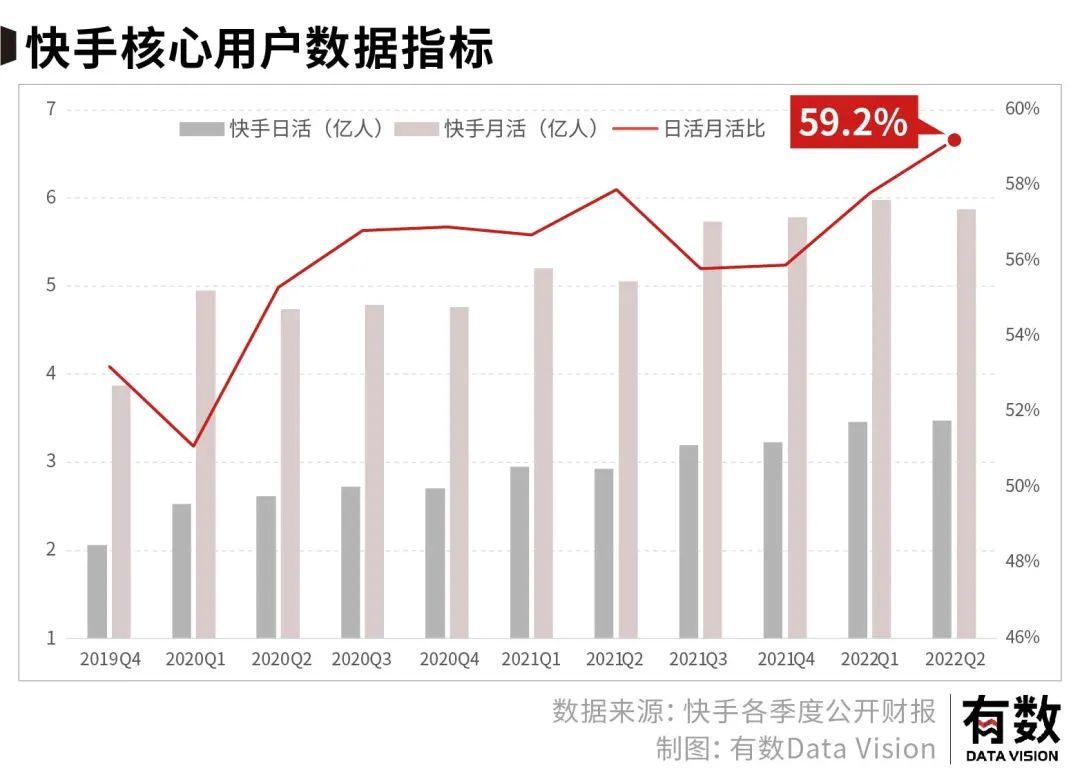 月活MAU维持在5.87亿,日活DAU为3.47亿,虽然失去了增长,但也没有因为营销费用的削减而降低,用户粘性指标 DAU/MAU(日活/月活)提升至59.2%,为历史新高。