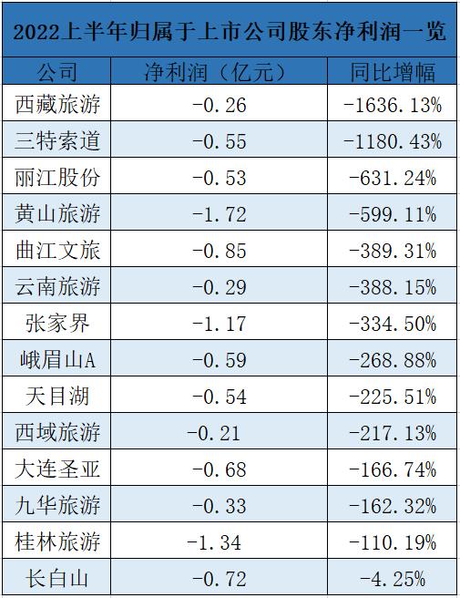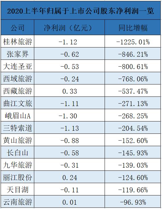 国内14家主要的景区类上市公司,上半年不仅清一色处于亏损状态,而且在归属于上市公司股东净利润这一关键数据上,集体暴跌。13家景区类上市公司跌幅百分比突破三位数,更有两家景区类上市公司跌幅百分比突破四位数。
