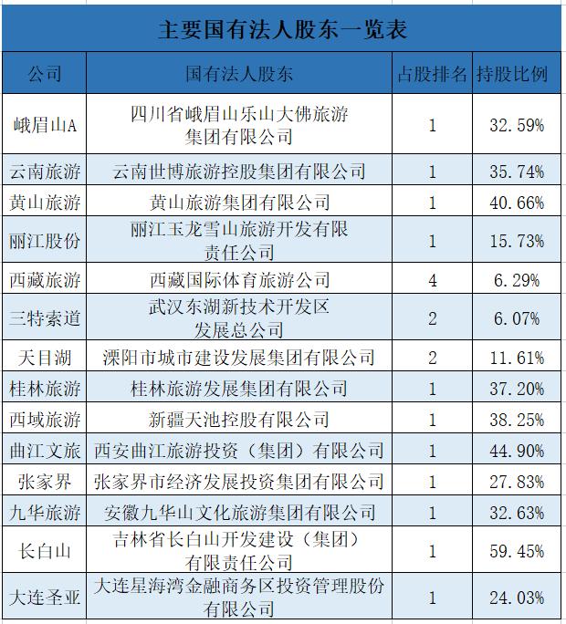 股东方面,景区类上市背后几乎都有国有法人大股东的支撑。