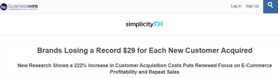 “美国商业资讯”(BusinessWire)网站今年7月援引电子商务服务商SimplicityDX的研究称,如今获客成本的高涨正在影响电子商务行业的盈利能力。在2013年,每获得一个新客户,商家平均损失9美元,现在则要损失29美元。