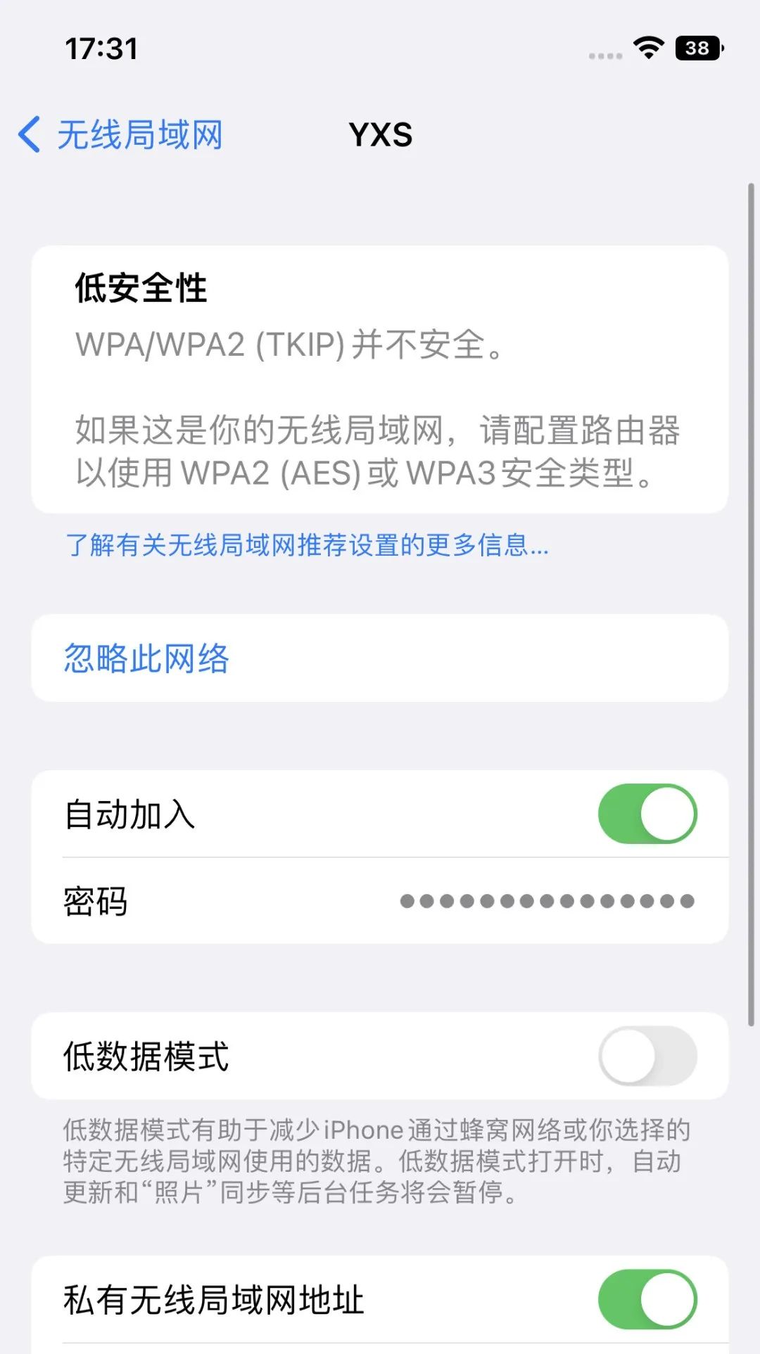 使用 iOS16 的用户,可以在进入无线局域网页面后点击目前连接的 Wi-Fi 信息,即可看到密码信息。