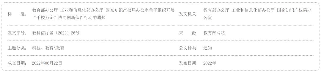 关于组织开展“千校万企”协同创新伙伴行动的通知,http://www.gov.cn/zhengce/zhengceku/2022-07/11/content_5700386.htm