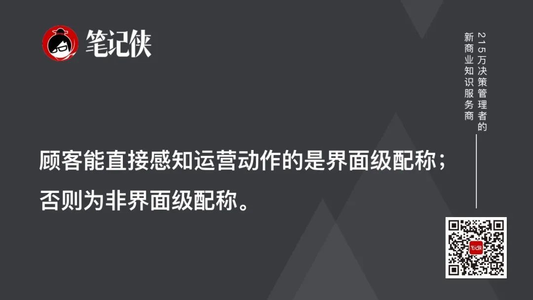 顾客能直接感知运营动作的是界面级配称;否则为非界面级配称。