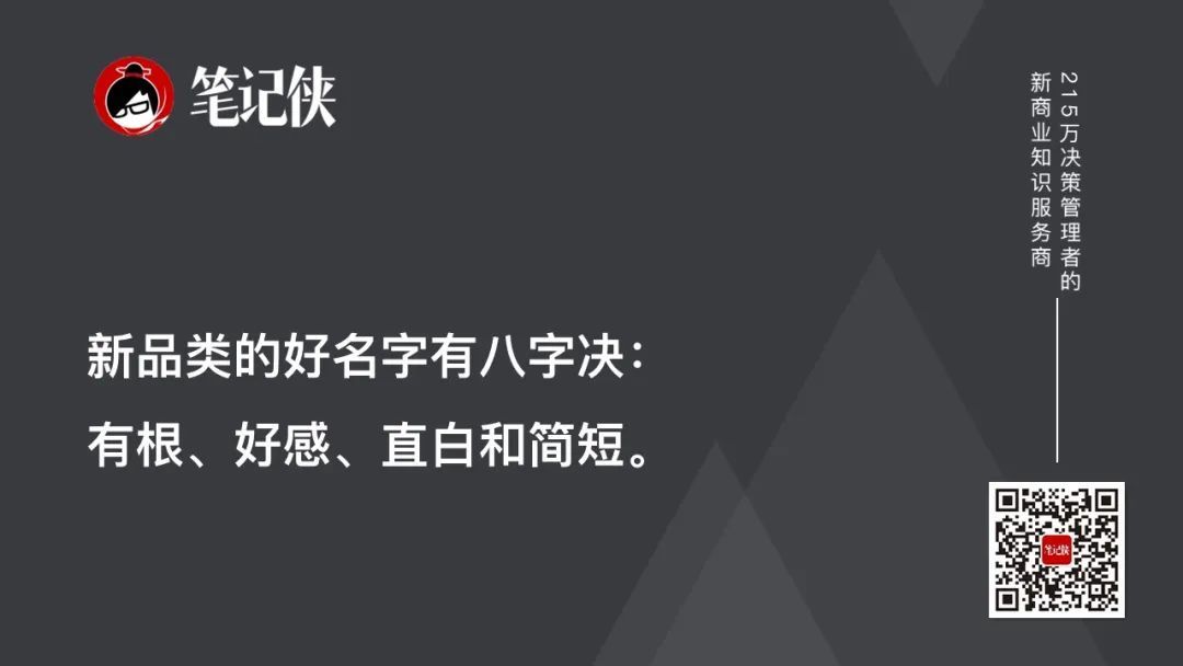 新品类的好名字有八字决:有根、好感、直白和简短。