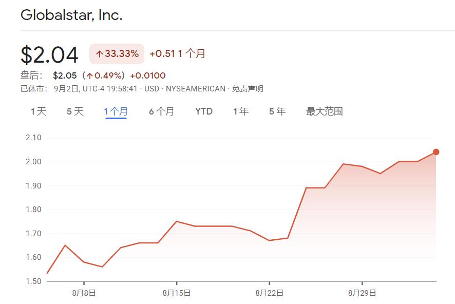 不管苹果iPhone 14是否会支持卫星通信功能,前文提到的潜在合作方全球星的股价是实实在在的狂涨了一波,近一个月,全球星股价涨幅超过了33%。