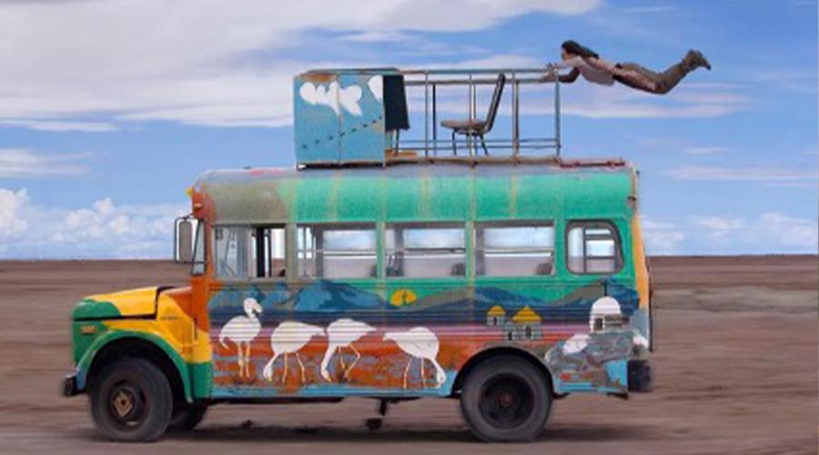 乌尤尼盐湖「飞驰」的彩色巴士和林林