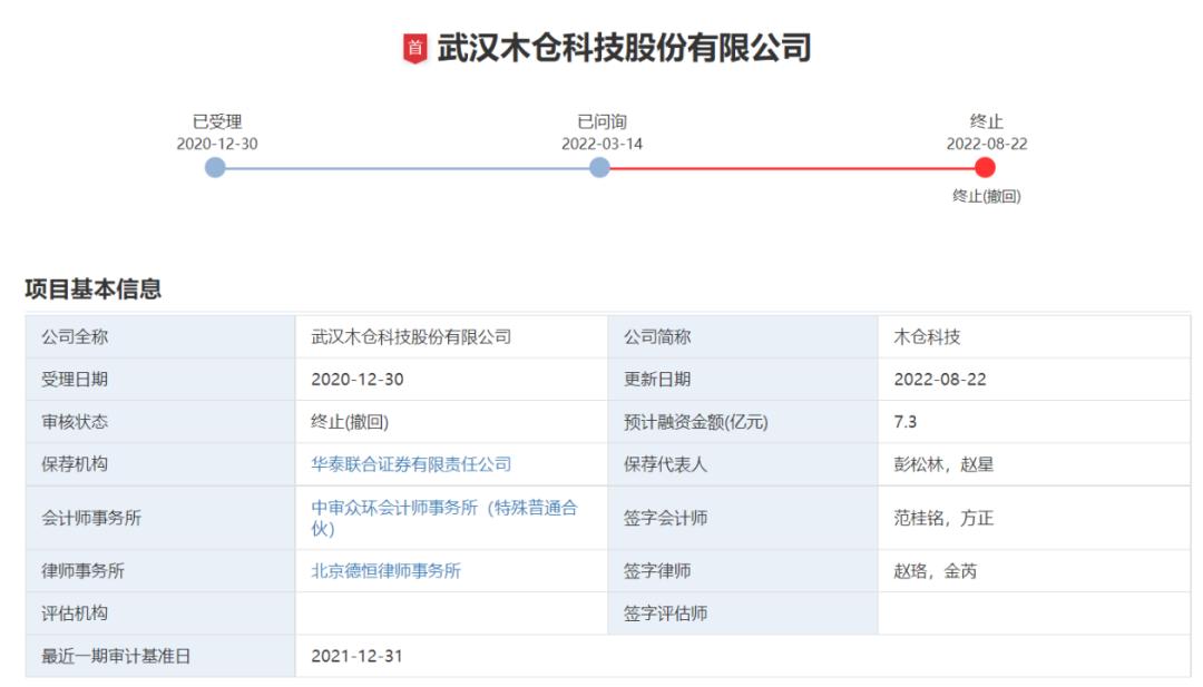 随着8月22日审核状态变更为“终止”,木仓科技上市的美好蓝图被画上问号,其是否会再度闯关IPO仍未可知。