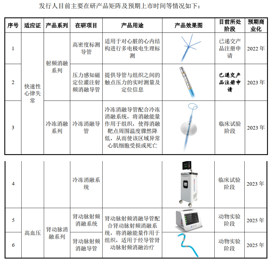 微创电生理主要在研产品及上市计划